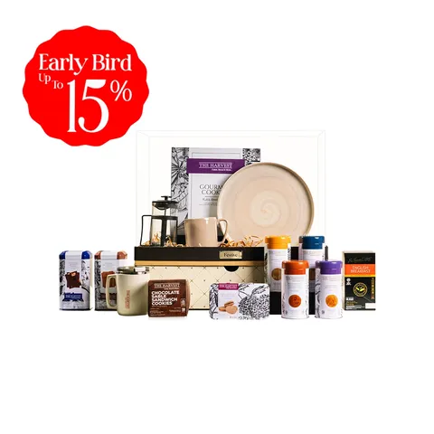 The warmth of the season, beautifully wrapped. Filled with handcrafted cookies and fine coffee, this hamper makes sharing joy effortless and sincere.